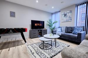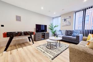 Klimatizovaný apartmán ubytování má 2 ložnice, obývací pokoj, plně vybavenou kuchyň s lednicí a myčkou a 1 koupelnu. Koupelna v Birmingham Gem 2-Bed with Netflix, Fun & Parking zahrnuje sprchu a toaletní potřeby zdarma. V ubytování Birmingham Gem 2-Bed with Netflix, Fun & Parking jsou pro hosty připraveny ručníky a ložní prádlo.