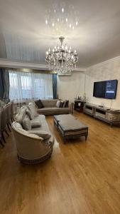The apartment's kitchen is available for cooking and storing food. The spacious apartment features air conditioning, a washing machine, an electric kettle, heating, as well as a flat-screen TV. The unit has 3 beds.