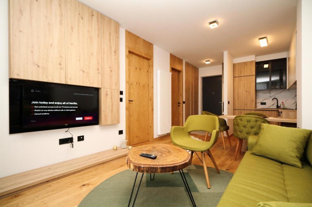 Featuring a private entrance, this apartment is comprised of 1 living room, 1 separate bedroom and 1 bathroom with a bath and a shower. The well-fitted kitchen features a stovetop, a refrigerator, an oven and an electric kettle. Boasting a terrace with mountain views, this apartment also offers a washing machine and a flat-screen TV. The unit offers 2 beds.