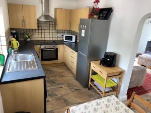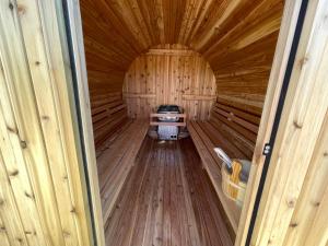 This holiday home boasts a hot tub and a fireplace. Featuring a private entrance, this holiday home is comprised of 1 living room, 2 separate bedrooms and 1 bathroom with a walk-in shower and a hairdryer. Guests will find a stovetop, a refrigerator, kitchenware and an oven in the kitchenette. The holiday home also has a barbecue. Boasting a terrace with garden views, this holiday home also offers a washing machine and a flat-screen TV with streaming services. The unit offers 3 beds.