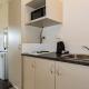 Hosté si mohou připravit jednoduché jídlo v kuchyňském koutu s toustovačem, rychlovarnou konvicí, mikrovlnnou troubou a lednicí.