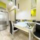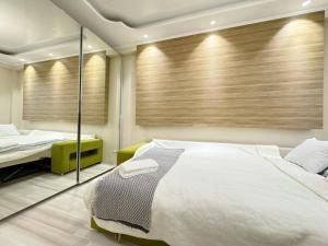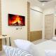 Diese Ferienwohnung mit Klimaanlage ist eingerichtet mit 1 Schlafzimmer, Flachbild-TV und einer Küche mit einem Kühlschrank und einem Ofen In dieser Ferienwohnung werden Handtücher und Bettwäsche angeboten.