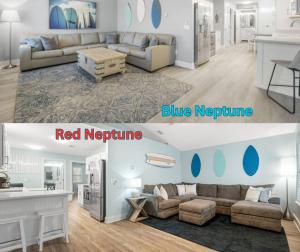 Дом для отпуска объект размещения оснащен кондиционером и включает в себя 4 спальни, гостиную, 2 ванные комнаты с душем и феном, а также кухню с кофемашиной и холодильником. В доме для отпуска Blue & Red Neptune by Nautical Properties Vacation Rentals для гостей подготовлены полотенца и постельное белье.