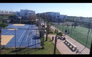 El apartamento de 2 dormitorios en Blue Beach sidi rahal ofrece TV de pantalla plana, aire acondicionado y sala de estar. El alojamiento ofrece cocina.