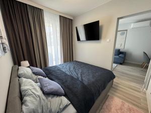 El apartamento Blue Coast Apartment cuenta con aire acondicionado, 1 dormitorio, sala de estar, cocina completa con nevera y cafetera, y 1 baño con ducha y artículos de aseo gratuitos. El apartamento Blue Coast Apartment dispone de toallas y ropa de cama.