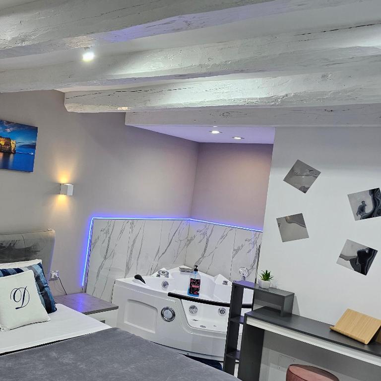 This holiday home's standout features are the hot tub and spa bath. Boasting a private entrance, this air-conditioned holiday home includes 1 living room, 1 separate bedroom and 1 bathroom with a shower and a bidet. In the well-equipped kitchen, guests will find a stovetop, a refrigerator, kitchenware and an oven. This holiday home has a washing machine, a minibar, a flat-screen TV with streaming services and a balcony. V této ubytovací jednotce se nachází 3 postele.