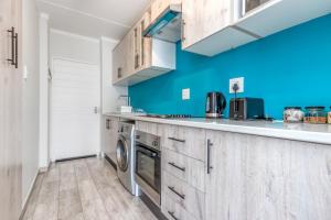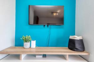 Das Apartment Blue Haven UPS Parking Pool Views ist mit 1 Schlafzimmer, 1 Bad, Bettwäsche, Handtüchern, Flachbild-TV, Essbereich, voll ausgestatteter Küche und Terrasse mit Gartenblick versehen.