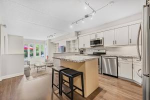 The spacious holiday home features 2 bedrooms, a TV with cable channels, a fully equipped kitchen with a dishwasher and an oven, a washing machine, and 2 bathrooms with a bath. Towels and bed linen are featured in the holiday home at Blue Mountain Haus - Private Patio - Walk to Blue.