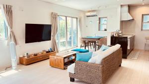Featuring a private entrance, this air-conditioned villa consists of a kitchen, 3 bedrooms and 1 bathroom with a bath and a bidet. Guests can make meals in the kitchen that is equipped with a stovetop, a refrigerator, a dishwasher and a microwave. The villa provides a washing machine, tatami, a tea and coffee maker, a flat-screen TV, as well as garden views. The unit offers 3 beds and 2 futons.