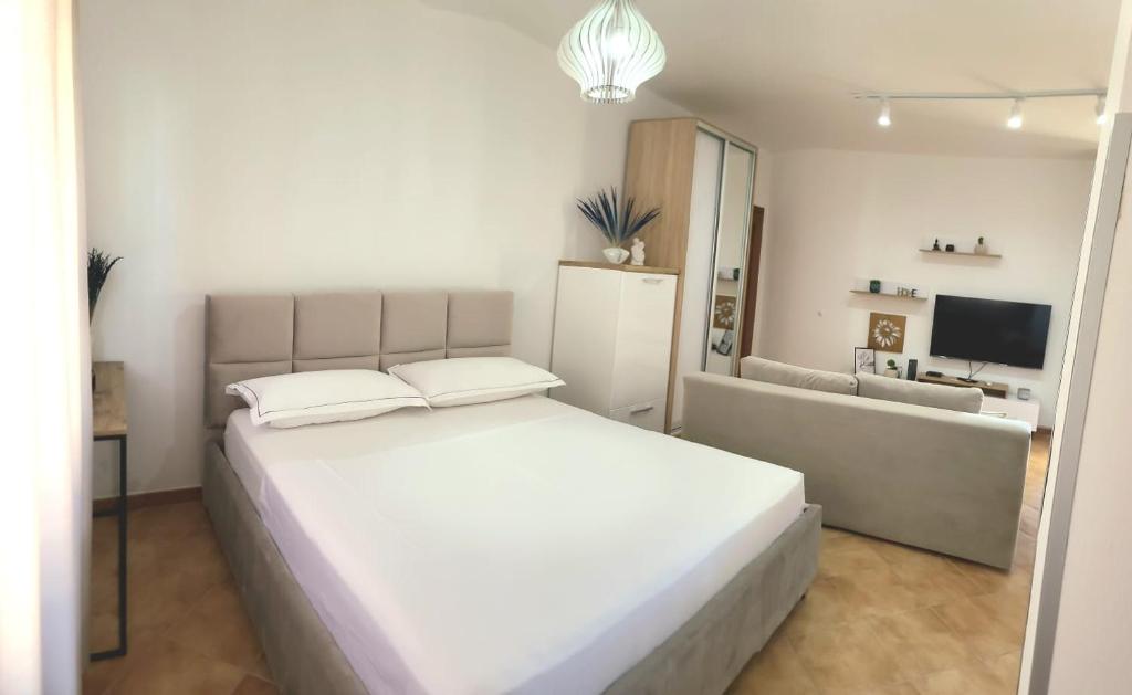 This air-conditioned apartment features 1 living room, 1 separate bedroom and 1 bathroom with a shower. The apartment's kitchen, which has a refrigerator and an electric kettle, is available for cooking and storing food. Boasting a balcony with sea views, this apartment also features a washing machine and a flat-screen TV with cable channels. The unit is furnished with 2 beds.