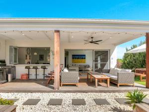 The fireplace is a top feature of this holiday home. The air-conditioned holiday home has 4 bedrooms and 2 bathrooms with a bath and a hairdryer. Guests will find a stovetop, a refrigerator, a dishwasher and kitchenware in the well-equipped kitchen. The holiday home also includes a barbecue. Boasting a patio, this holiday home also features a washing machine, a tea and coffee maker and a flat-screen TV with cable channels. The unit has 6 beds.