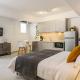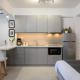 Apartament z 1 sypialnią w Blueisla GREY Studio Town Mykonos mieści salon z telewizorem, kuchnię z lodówką i piekarnikiem oraz łazienkę z suszarką. Ręczniki i pościel są dostępne w apartamencie Blueisla GREY Studio Town Mykonos.