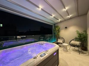This apartment provides a hot tub. The apartment's kitchen is available for cooking and storing food. A seating area with a flat-screen TV, air conditioning and a balcony are provided in this apartment. The unit offers 2 beds.