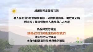 Mona Rudo Resistance Monument se nachází 12 km od ubytování Bluesky Garden. Mezinárodní letiště Taichung leží 100 km daleko.