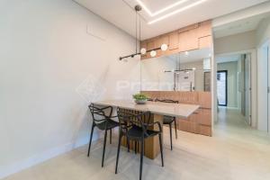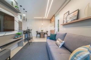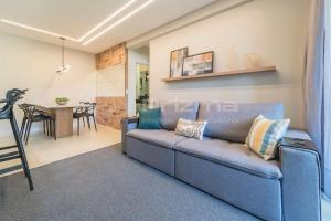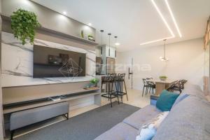 Cet appartement avec climatisation se compose de 2 chambres séparées, d'un salon, d'une cuisine entièrement équipée avec un réfrigérateur et un four, ainsi que de 3 salles de bains. Vous trouverez des serviettes et du linge de lit à 303 Bl 01 - WaldGarten Bombinhas - 50 m do Mar e Frente Avenida - Condomínio de Alto Padrão - Piscina - Academia - Salão de jogos.