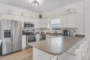 Questa casa vacanze offre 3 camere da letto, una TV a schermo piatto con canali satellitari, una cucina con frigorifero e lavastoviglie, una lavatrice e 3 bagni con vasca da bagno. Lenzuola e asciugamani sono inclusi nell'offerta di BMB - The Turquoise Turtle.
