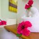 Las habitaciones están bien iluminadas y cuentan con muebles de madera, ventilador de techo, suelo de madera, armario y ropa de cama colorida. El baño incluye ducha y artículos de aseo gratuitos. Algunos alojamientos ofrecen vistas a los jardines.