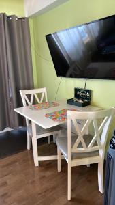 Bonheur partagé cuenta con aire acondicionado, 1 dormitorio, sala de estar, cocina completa con nevera y cafetera, y baño con ducha y artículos de aseo gratuitos. La casa o chalet Bonheur partagé proporciona toallas y ropa de cama.