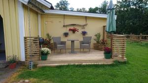 This twin room has a garden view. Please note that the shared shower and toilet are located in a different building.