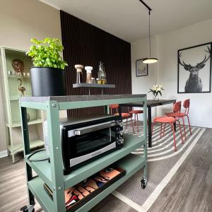 The apartment at the property comes with 1 bedroom, 1 bathroom, bed linen, towels, a flat-screen TV with streaming services, a dining area, a fully equipped kitchen, and a terrace with garden views. A private entrance leads into BOSTEL 2- Modernes Studio in Duisburg Meiderich, 4,7 km Hbf, U-Bahn 250m, Flughafen Düsseldorf 28 km, Landschaftspark 2,9 km, 5 Gehminuten von Herzklinik entfernt, where guests can enjoy wine or champagne and chocolates or cookies.