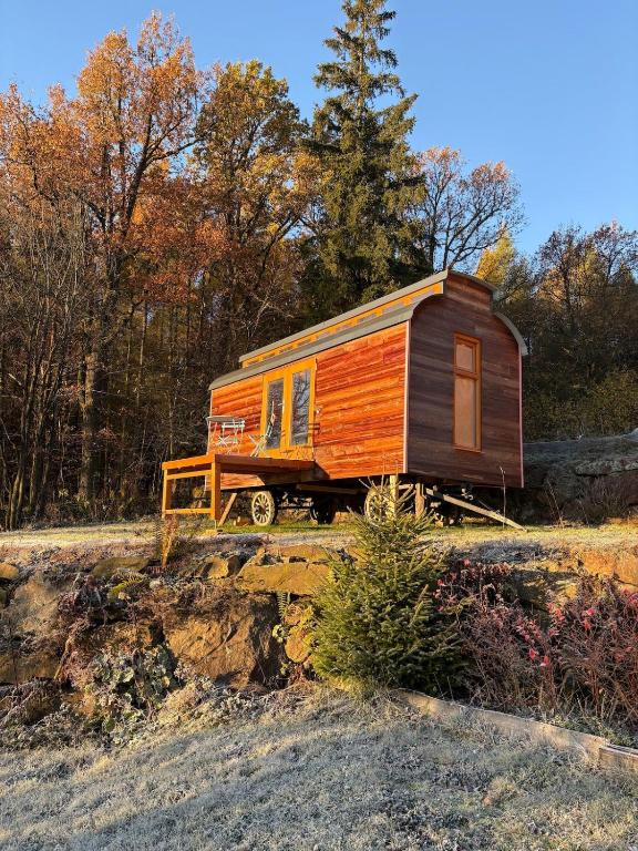 Boubínská maringotka si trova a Drslavice e offre una sauna. Situata a 46 km da Castello di Český Krumlov, la struttura propone un giardino e il parcheggio privato gratuito.