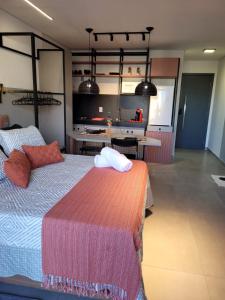 El apartamento en BOX309 - Lindo Studio na Praia do Bessa tiene TV de pantalla plana por cable. La zona de cocina está equipada con horno, microondas y minibar, además de cafetera.