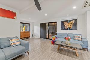 This holiday home provides a hot tub. Boasting a private entrance, this air-conditioned holiday home includes 1 living room, 4 separate bedrooms and 2 bathrooms with a walk-in shower and a bath. In the kitchen, guests will find a refrigerator, a dishwasher, kitchenware and a microwave. The spacious holiday home offers a washing machine, a tea and coffee maker, a seating area, a flat-screen TV, as well as garden views. V této ubytovací jednotce se nachází 5 postelí.