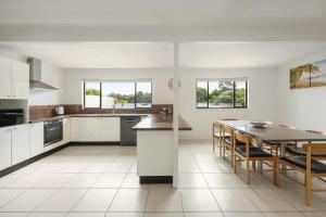 This holiday home features a large fully equipped kitchen, a 10-seat dining setting and views over the pool area and Noosa River. The master bedroom offers an en suite bathroom with a spa bath and stunning river views.