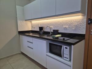 The apartment's kitchen, which has kitchenware and a microwave, is available for cooking and storing food. The apartment features a flat-screen TV, a tea and coffee maker, a wardrobe and a tiled floor. The unit has 1 bed.