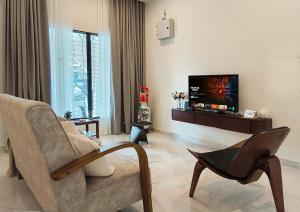 Featuring a private entrance, this air-conditioned holiday home is comprised of 1 living room, 3 separate bedrooms and 4 bathrooms with a walk-in shower and a bidet. The well-equipped kitchen features a refrigerator, kitchenware, a microwave and an electric kettle. Boasting a terrace with garden views, this holiday home also offers a washing machine and a flat-screen TV with streaming services. The unit offers 6 beds.