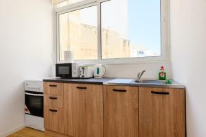 Klimatizovaný apartmán v Bright & Airy Apt in Central Sliema - Sleeps 3 má 1 ložnici, kuchyň a TV s plochou obrazovkou.