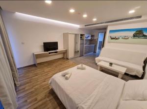 Featuring free toiletries, this studio includes a private bathroom with a shower and a hairdryer. Guests can make meals in the kitchen that features a stovetop, a refrigerator, kitchenware and a microwave. The air-conditioned studio features a flat-screen TV, a private entrance, soundproof walls, a tea and coffee maker as well as sea views. The unit has 3 beds.
