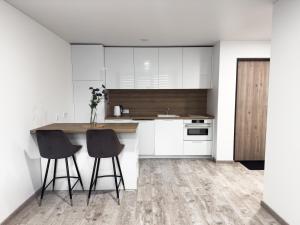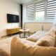 Bright apartments in Klaipėda consists of 1 bedroom, a fully equipped kitchen, and 1 bathroom. A flat-screen TV is featured.