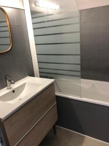 Accommodation at Bright Saint Brieuc - 3 chambres modernes includes 1 bedroom, a fully equipped kitchen, and 1 bathroom. A flat-screen TV is provided.