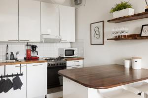 The well-equipped kitchen features a stovetop, a refrigerator, a dishwasher and kitchenware. The apartment offers a coffee machine, a dining area, a wardrobe, a flat-screen TV, as well as city views. The unit offers 2 beds.