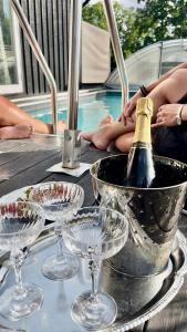This apartment features a private pool and a sauna. Boasting a private entrance, this air-conditioned apartment features 1 living room, 1 separate bedroom and 1 bathroom with a shower and a hairdryer. Guests will find a stovetop, a refrigerator, kitchenware and an oven in the fully equipped kitchenette. The apartment also comes with a barbecue. A sofa, a flat-screen TV, a tea and coffee maker and a terrace are offered in this apartment. V této ubytovací jednotce se nachází 2 postele.