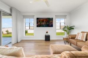 Boasting a private entrance, this air-conditioned holiday home comes with a kitchen, 4 bedrooms and 2 bathrooms with a bath and a hairdryer. The fully equipped kitchen has a stovetop, a refrigerator, a dishwasher and kitchenware. Featuring a patio, this holiday home also features a washing machine, a wardrobe and a TV. The unit has 5 beds.