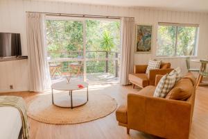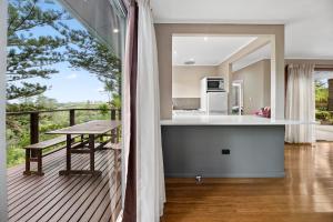 This modern villa features a fully equipped kitchen. It also includes a private balcony with outdoor furniture and barbecue facilities.