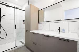 W domu wakacyjnym z 3 sypialniami zapewniono salon z telewizorem, kuchnię z pełnym wyposażeniem, w tym lodówką i zmywarką, a także kilka łazienek (2) z wanną z hydromasażem. W domu wakacyjnym Bromont Lodge 837 shefford suite 200 dla Gości przygotowano ręczniki i pościel.