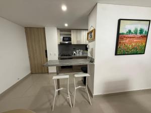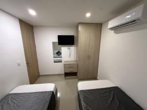 Klimatyzowany apartament 4BRR Apto Luxury - Cond Club Palmetto Ultimo piso posiada sypialnię i telewizor. Na miejscu znajduje się kuchnia.
