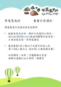Odległość od ważnych miejsc: Świątynia Neimen Zihjhu - 35 km, Stara ulica Cishan - 41 km. Najbliższe lotnisko, Lotnisko Tainan, znajduje się 6 km od obiektu Bryan Southern Villages.
