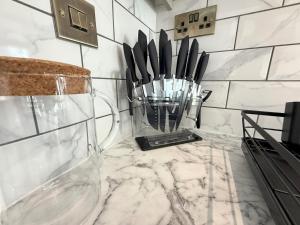 Apartmán Bubbles Bliss - Hot Tub Garden Pass the Keys zahrnuje 1 ložnici, plně vybavenou kuchyň s lednicí a mikrovlnnou troubou a 1 koupelnu se sprchou. V apartmánu Bubbles Bliss - Hot Tub Garden Pass the Keys nechybí TV a koupelna s fénem.