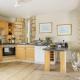 Dieses Ferienhaus bietet eine Veranda / Patio, 2 Schlafzimmer, ein Wohnzimmer und eine gut ausgestattete Küche mit einem Kühlschrank und einem Geschirrspüler. In diesem Ferienhaus werden Handtücher und Bettwäsche angeboten.