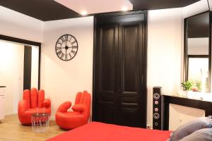 Pokoje: 1This apartment boasts a hot tub, spa bath and fireplace. Featuring a private entrance, this air-conditioned apartment comprises 1 living room, 1 separate bedroom and 1 bathroom with a shower and a hairdryer. The well-fitted kitchen has a stovetop, a refrigerator, kitchenware and a microwave. This apartment features soundproof walls, flat-screen TV with cable channels, city views, as well as chocolate for guests. V této ubytovací jednotce je k dispozici 1 postel.