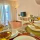 Diese Ferienwohnung ist ausgestattet mit 2 Schlafzimmern, 1 Badezimmer, Bettwäsche, Handtüchern, einem Flachbild-TV, einem Essbereich, einer voll ausgestatteten Küche und einer Terrasse mit Poolblick.
