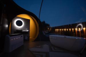 Chaque logement à burbujas del sella dispose d'une salle de bains privative avec douche, articles de toilette, sèche-cheveux et chaussons.