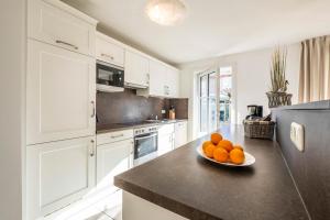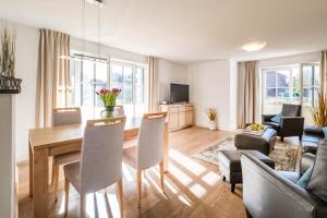 The spacious apartment at Büsumer Reethus Apartment 1 6 comprises 2 bedrooms, a TV, a bathroom with a shower, and a fully equipped kitchen with a dishwasher and oven. Büsumer Reethus Apartment 1 6 includes an outdoor dining area.