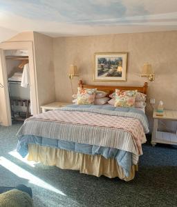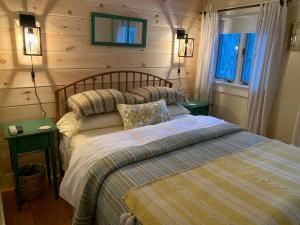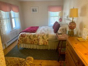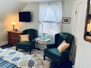 This room features a mural of the Inn in the 1820s and a custom designed armoire. The private bathroom offers views of Merriman State Forest. A TV, DVD player, and smart phone docking station are provided.