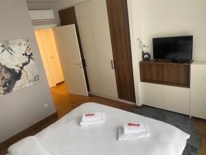 L'appartamento climatizzato di Bw Sky View3,Belgrade Waterfront include 1 camera da letto, soggiorno, bagno con vasca o doccia e set di cortesia, e cucina con utensili, frigo e macchina da caffè. Presso la struttura la dotazione include lenzuola e asciugamani.