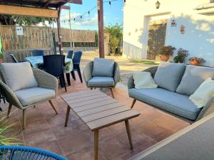 Bright and decorated with clear tones, the house is composed of 2 double bedrooms, 1 twin bedroom and 2 bathrooms. The fully-equipped kitchen is completed with a dishwasher and open onto a living-dining area equipped with a sofa and a flat-screen TV. There is free WiFi available throughout.